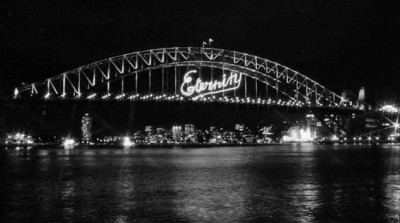 - Eternity in the Heart of Sydney -- "What was the story behind the enigmatic word which lingered on the Sydney Harbor Bridge after the New Year's Eve fireworks faded out?" -- an excellent true story by Nigel Chapman, complete with photos (see one above!).